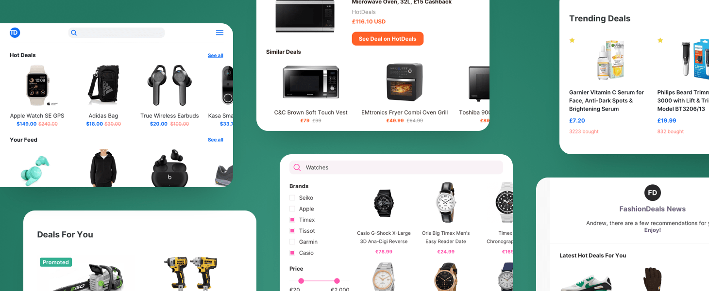 Increase customer satisfaction by offering user-specific deal recommendations, transforming browsing into finding.