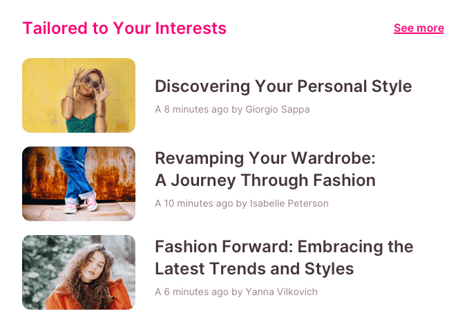Enhance the discovery experience through personalized emails with articles tailored to the user's unique preferences.