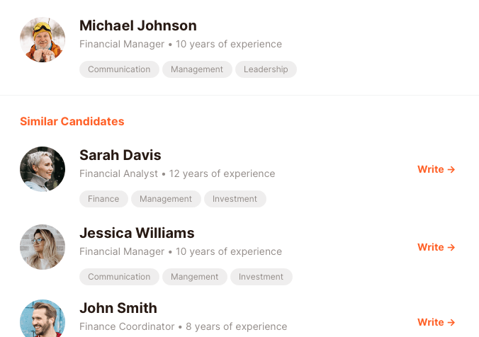 Showcase candidates with similar qualifications, skills, and experience that may also be a fit for the job.