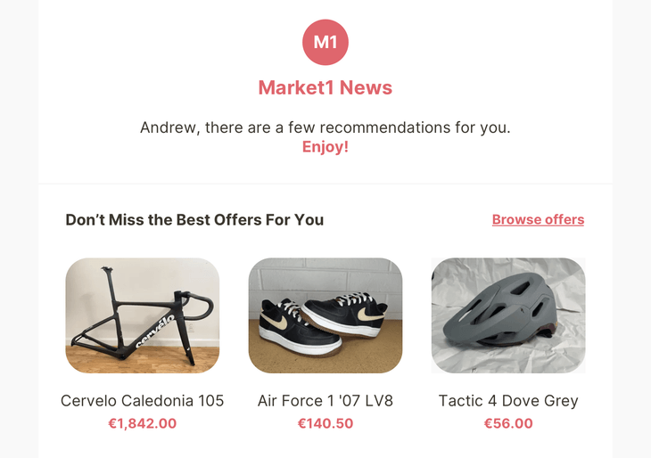 Recombee offers a unique solution that ensures the growth of your P2P marketplace. Buyers benefit from finding items specific to their needs, sellers gain better discoverability of their offers, and you also receive additional revenue from programmatic ads (such as Google AdSense) through higher CTR and boosted user loyalty.