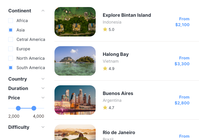 Customize travel tips by showing the most relevant destinations from a pre-selected list.