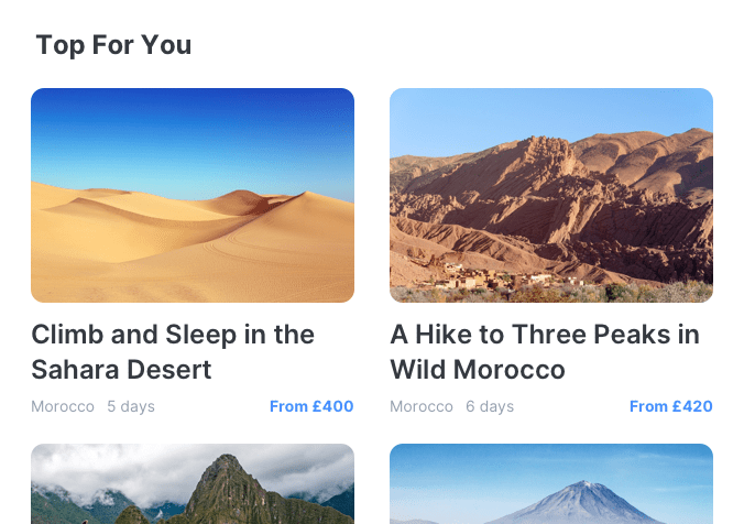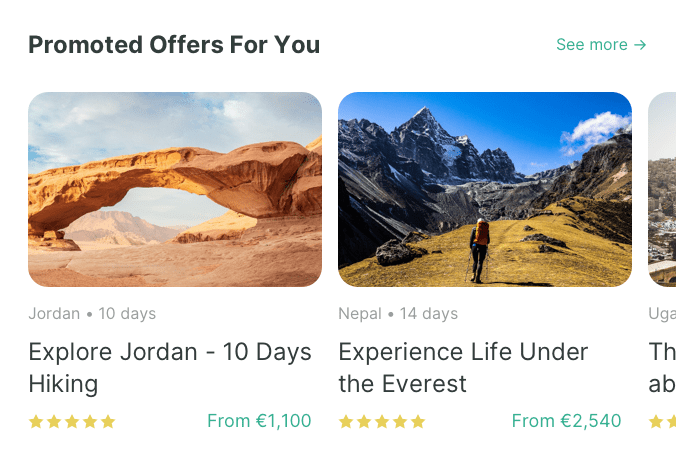 Recombee’s cutting edge personalized trip recommendations keep your customers engaged and make their experiences unforgettable.
