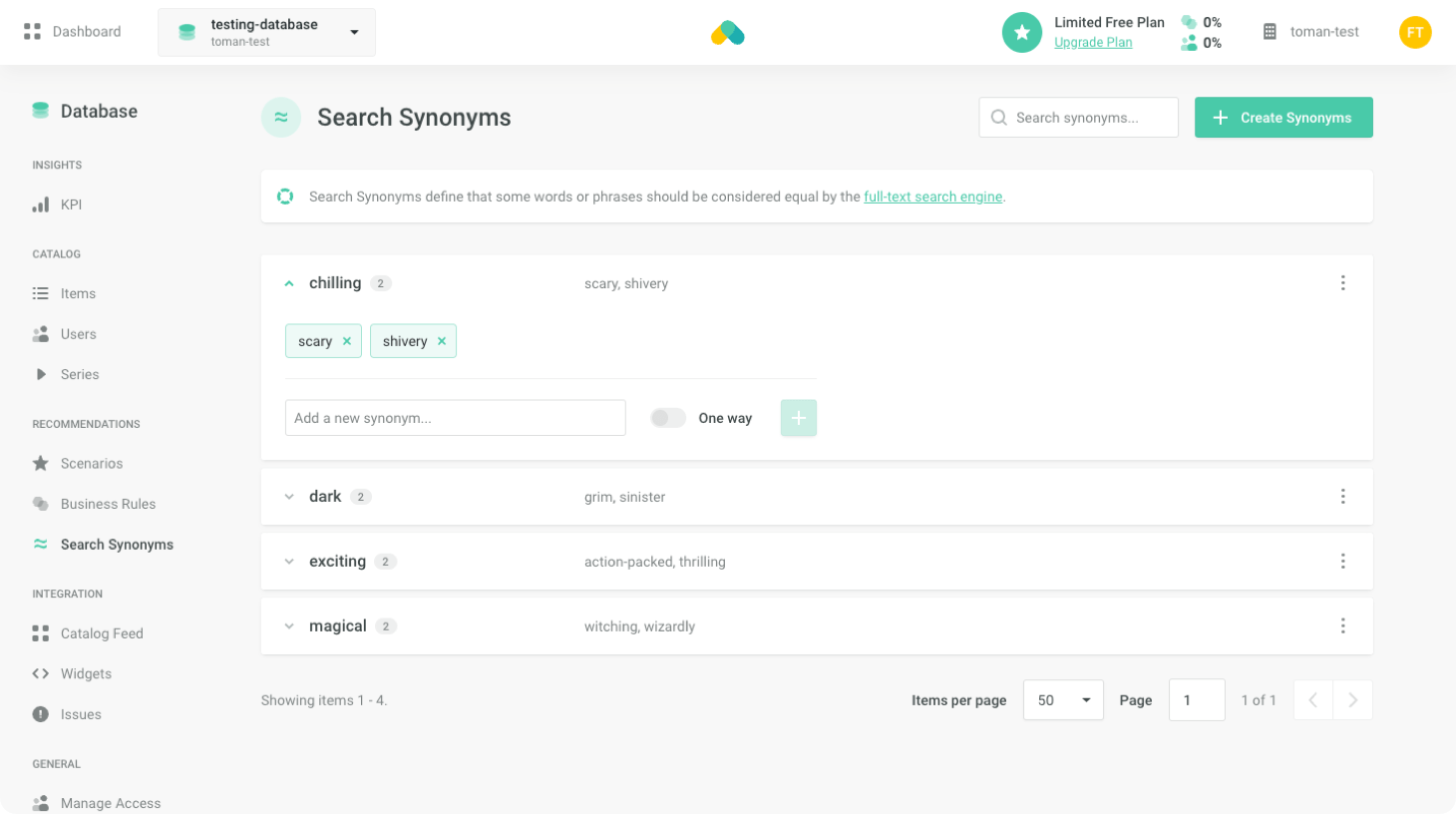As we are working with many media houses, podcast platforms, and other sites providing content on their side that can be found with a search function, we ease the user’s experience with a personalized full-text search. Our personalized search 2.0 helps users find what they have in mind as long as the search query remotely resembles any piece of content that was uploaded in the catalog feed. This function now also includes Search synonyms.