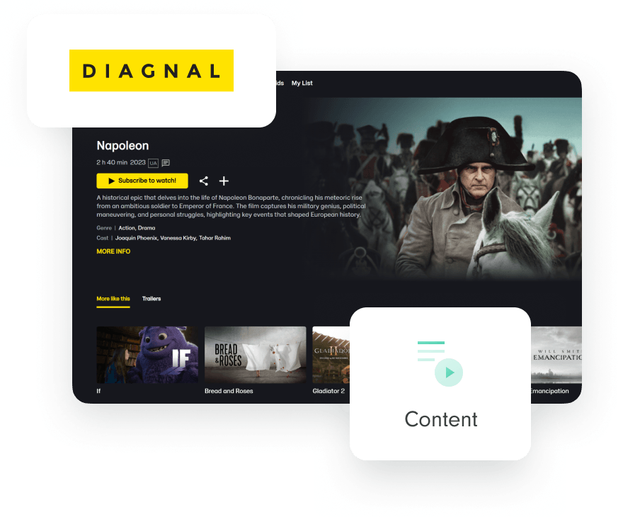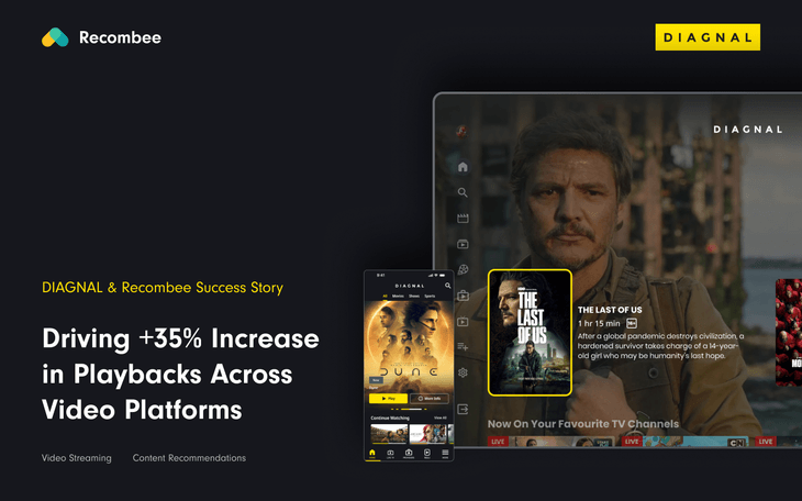 On the homepage, DIAGNAL deploys Recombee-powered “Recommended For You” rails across client platforms. These use a hybrid of collaborative filtering and popularity-based models to generate personalized content suggestions from the first session. The row updates instantly after a user’s first interaction, such as clicking a title, and continues to refine based on ongoing activity.